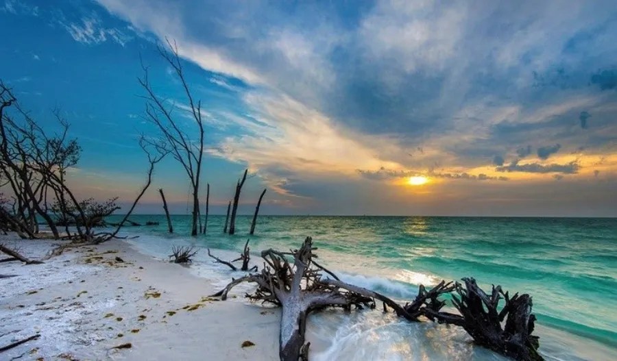 If you’re a little more adventurous and would like to go off the beaten path, then the Beer Can Island may be your next hidden gem. Located just north of Longboat Key, Beer Can Island is not that easy to find as there is no official entrance and there no designated parking for the beach. Note: there is also another place near Tampa with the same name, but only accessible by boat – this is not that place! This place is in Sarasota near Longboat Key, just right before you get on the Longboat Key Bridge – the bridge that connects the key with AMI. The entrance to Beer Can Island is nested between the high-end beach-front condos near this address: N Shore Rd, Longboat Key, FL 34228. As noted, there’s no designated parking lot, so you would need to find a space along the condos/houses to park. If there isn’t any available spot, then please do not park illegally – your car may be towed. In this case, you should park at Coquina Beach right across from the bridge and walk over. Once finding an “entrance” in between the condos, you should see the mangrove. Walk through the mangroves until you see dead driftwood and trees, that’s the sign that you have arrived at the Beer Can Island. There is no public restroom, lifeguard, not even a garbage can here. Please take your trash with you, and if you need to use the restroom, then walk along the beach until you reach Coquina Beach.