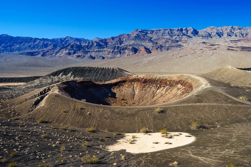 - Ubehebe Crater is a volcanic crater. You can see the crater from the parking lot. If you want a closer look, you have to hike around the rim of the crater for about 1.5 miles.