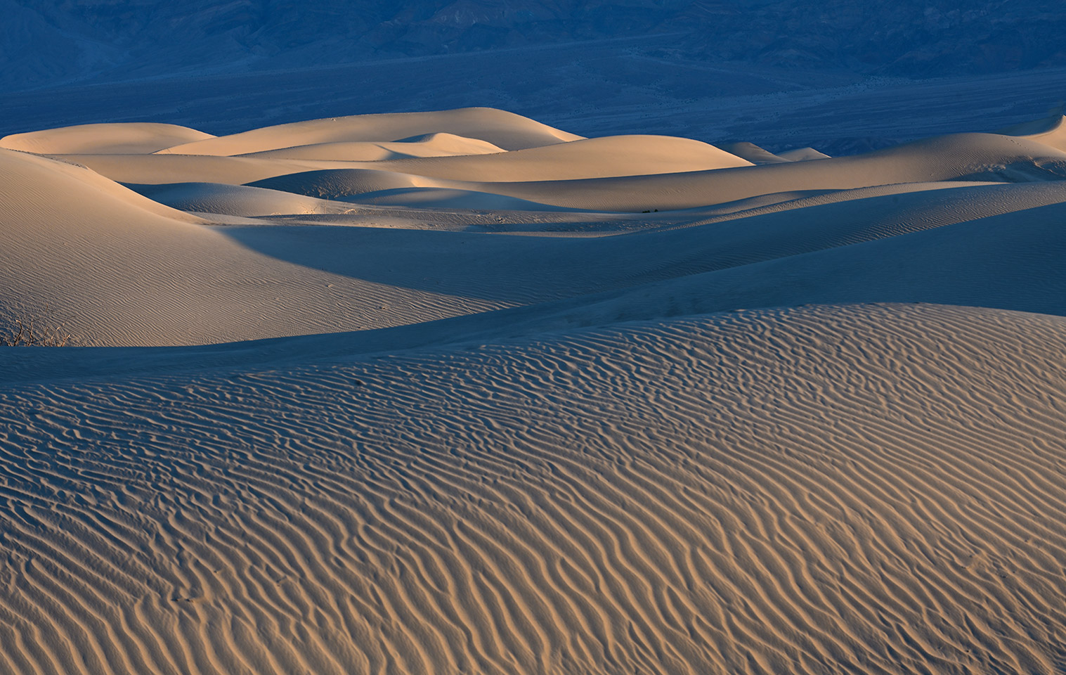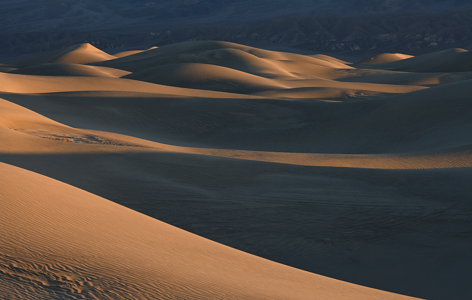 - Mesquite Flat sand dunes are beautiful golden sand dunes surrounded by purple mountains. The sand ripples with no footprints is an breathtaking landscape for photography. I think this place will also be very beautiful for wedding photos! From the parking lot, you can walk and see unlimited sand dunes. This goes without saying – it is of utmost importance to keep track of the direction so you know how to come back out! Honestly, the sand dunes look so similar that it can get confusing.