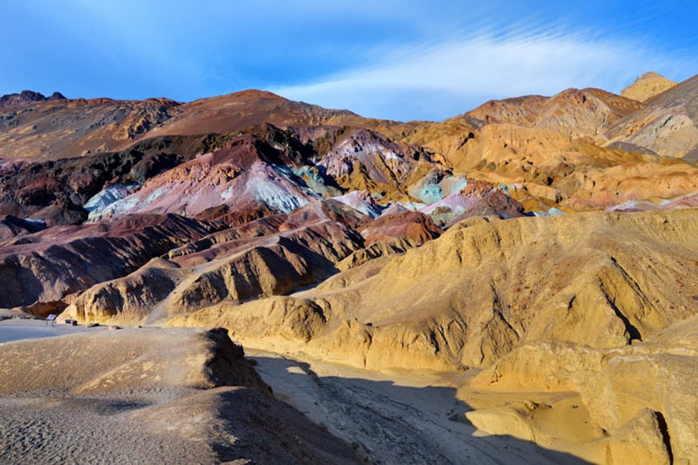 - Artists Drive is and Artist’s Palette – Artists Drive is a 9-mile scenic drive of unique views in Death Valley. This road only runs one way from South to North. There are many beautiful places on the way for you to stop and see or explore, but the most worth-visiting is the Artist’s Palette, which got its name from the hills and mountains having many different colors such as pink, teal, purple… like an artist’s color palette, created by the oxidation of metals in the soil.