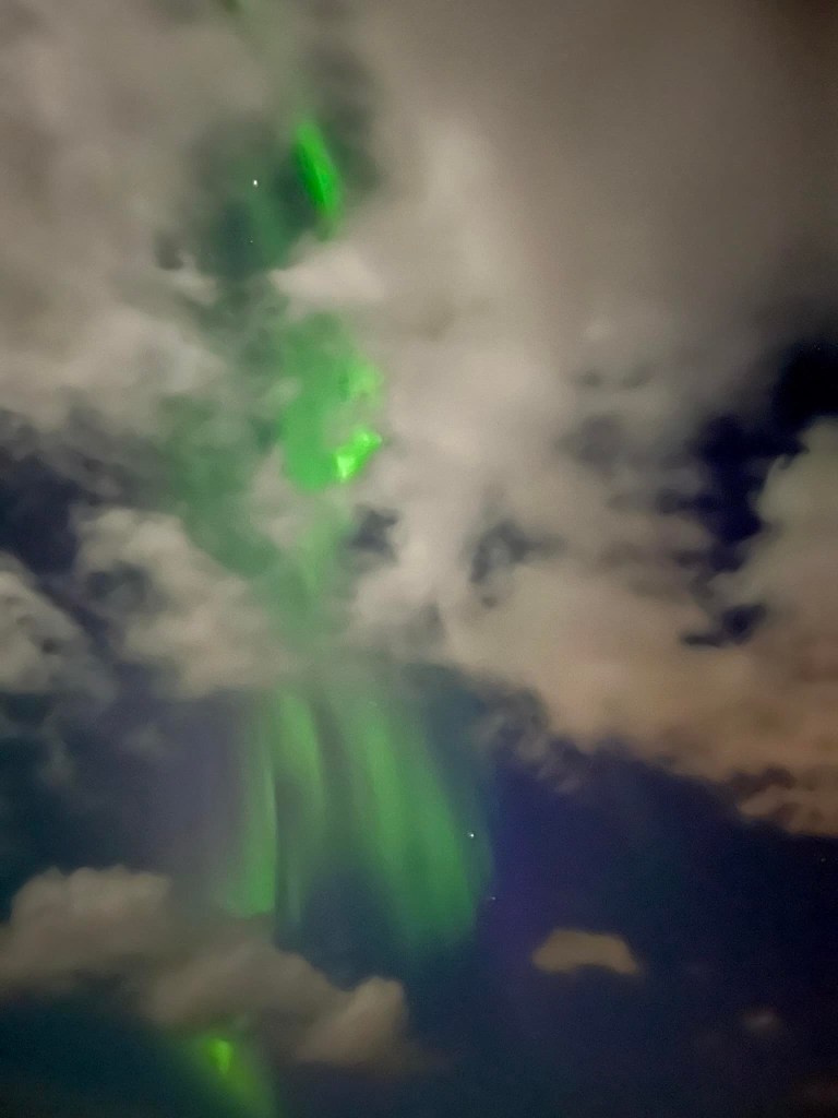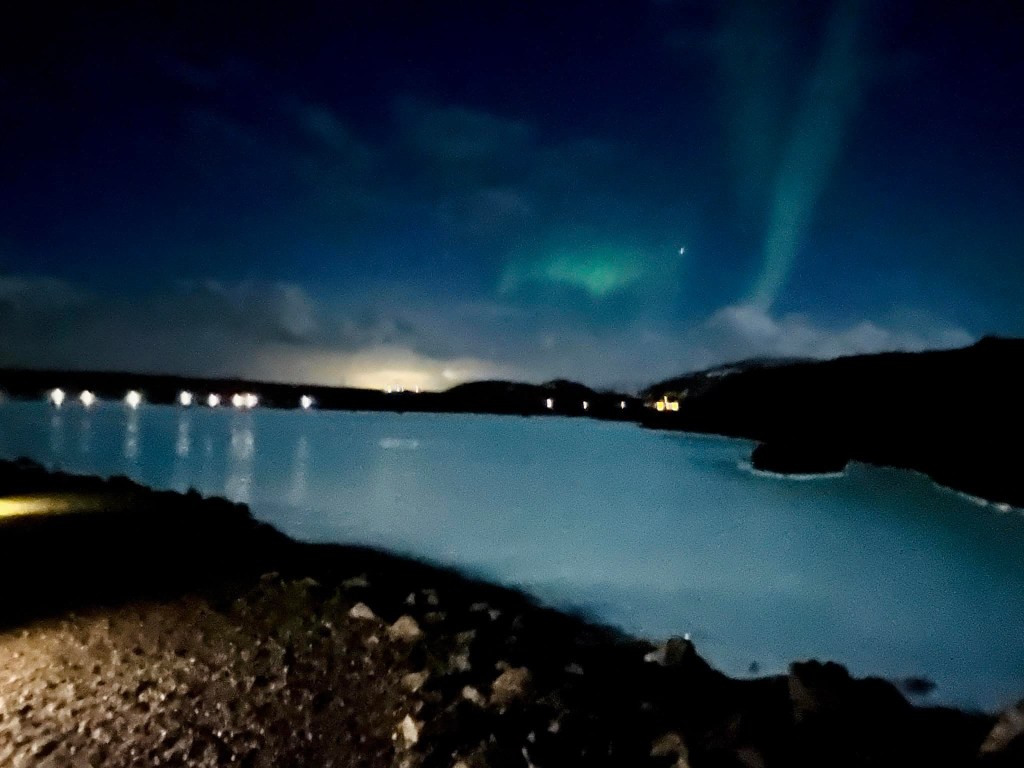 We had our first dinner in Iceland at the Lava Restaurant in the Blue Lagoon. When leaving, we were surprised to witness the Northern Lights! At only about 10 p.m. not too far from the city, the viewing wasn’t as vivid as what you see in photos. We saw streaks of lights in green. Unprepared, we only captured the night sky with our phones. For best viewing, the sky needs to be pitch dark, usually after midnight at a place with no city lights. We went back to the hotel and had planned to come out after midnight for catch a better glimpse, but the plan didn’t work out. Being jet lagged, we hardly slept on the flight and could hardly keep our eyes open past 11 p.m. that night!