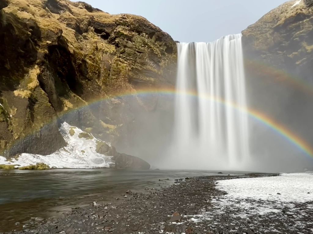 Skógafoss is not only breathtaking, it also has a fascinating story, adding to its mystique. During the settlement of Iceland, a sorcerer named Thrasi Thorlaksson was said to have buried a treasure chest in the cave behind the waterfall. In the 17th century, a group of men was said to have found the treasure chest. However, as they tried pulling on the chest, the ring on the chest broke off, and the treasure chest disappeared into the cave. You can view this mysterious ring if you visit the Skogar museum nearby, where it’s on display.