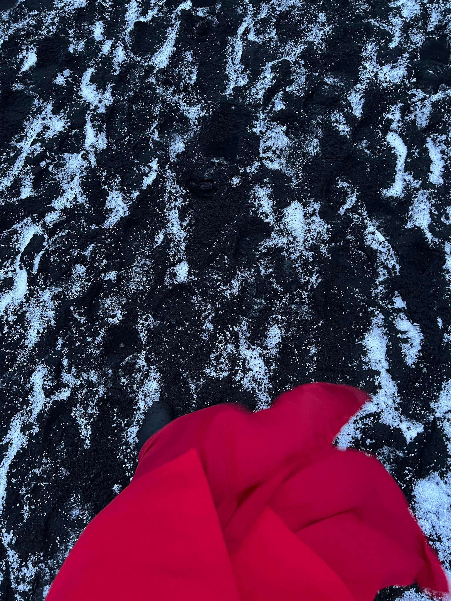 As we were walking to the beach from the parking lot, a snow/hail blizzard came. It lasted for about 5-10 minutes. So you see, the ground was covered in snow.