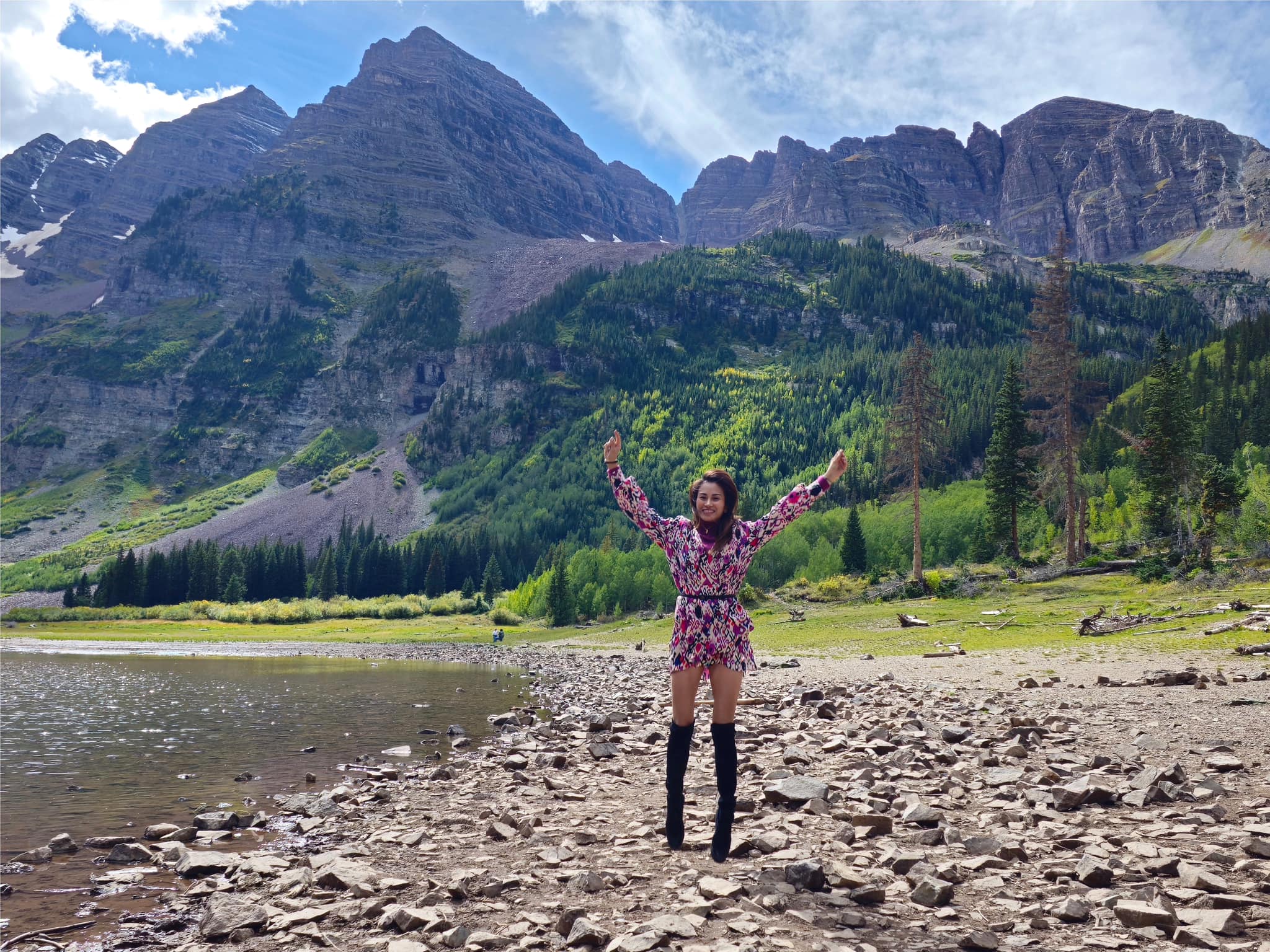 Đây là mình, thật hí hửng khi được du lịch: được hòa mình với thiên nhiên tuyệt đẹp, được học hỏi được nền văn hóa mới, được tạo thêm kỷ niệm với gia đình và bạn bè! [Hình chụp ở Maroon Bells – Aspen, Colorado]