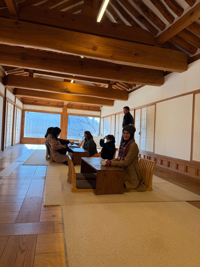 Nhiều năm trước, mình đã đến Seoul chơi một tuần và đã ghé thăm một vài khu vực đề cập ở trên. Trong lần quá cảnh gần đây, chúng mình đã chọn ở lại Myeongdong. Đây là một lựa chọn hợp lý vì chúng mình đến Seoul vào buổi chiều tối. Đồ ăn đường phố ở đây rất ngon, quang cảnh đường phố Myeongdong rất thú vị và nhộn nhịp, và tụi mình đã được đi mua sắm thỏa thích các sản phẩm chăm sóc da của Hàn Quốc. Có một cửa hàng Olive Young rất lớn ở đây nếu bạn muốn ghé – gần đây cửa hàng này trở nên rất phổ biến. Ngày hôm sau, chúng mình được xem lễ đổi ca gác tại Cung điện Gyeongbokgung (diễn ra hai lần một ngày tại Cổng Gwanghwamun, lối vào chính của cung điện, lúc 10 giờ sáng và 2 giờ chiều. Lễ này được thực hiện hàng ngày trừ thứ Ba khi cung điện đóng cửa.) Từ cung điện Gyeongbokgung, chúng mình đi bộ đến Làng Bukchon Hanok để xem những ngôi nhà truyền thống và ghé thăm Hội trường Bukchon Hanok (một bảo tàng miễn phí tại địa chỉ 29-1 Bukchon-ro 12-gil).