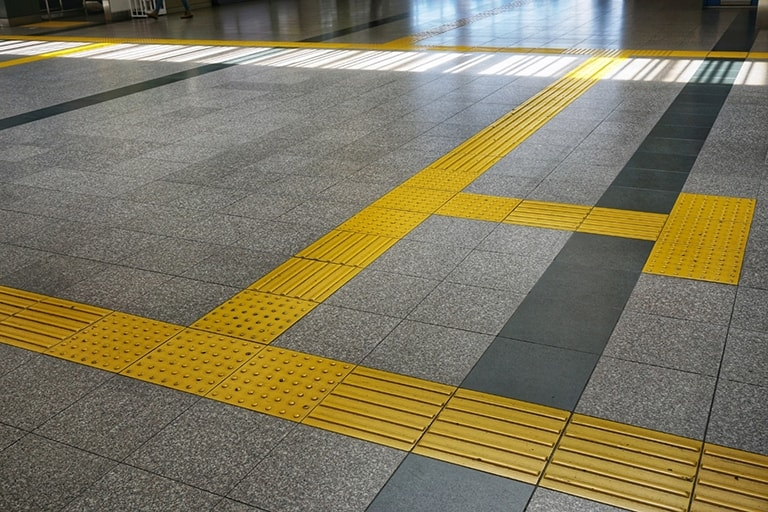 Đây là lối đi xúc giác dành cho người khiếm thị, mà bạn có thể tìm thấy khắp nơi ở Nhật.